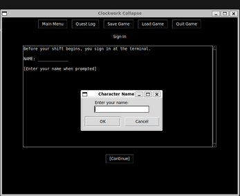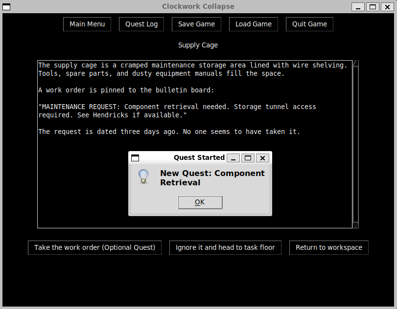 Clockwork Collapse is a mystery-driven, discovery‑focused text RPG set in Chronvale — a sprawling clockwork city powered by the Meridian Engine, a monumental engine that quietly governs the flow of time.